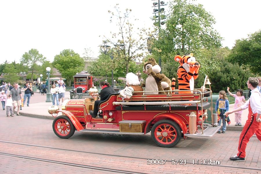 Man geht hinein, schiebt das Ticket in den Automaten, bekommt Einlass und schon befindet man sich in einer anderen Welt. Man muss zunächst unter der Disneyland Railroad Main Street Station durch und steht dann auf der Main Street. Sie hat einen ganz besonderen Zauber, denn sie wurde nach dem Vorbild von Marceline, der Stadt, in der Walt Disney aufgewachsen ist, gebaut. Schon die Musik versetzt einen in eine frühere Zeit, die Häuser, die Straßenlampen, die alten Vehikel, die überall fahren und die einen schnell bis zum anderen Ende der Straße bringen können. Aber schnell wollen wir nicht und so gehen wir zu Fuß.