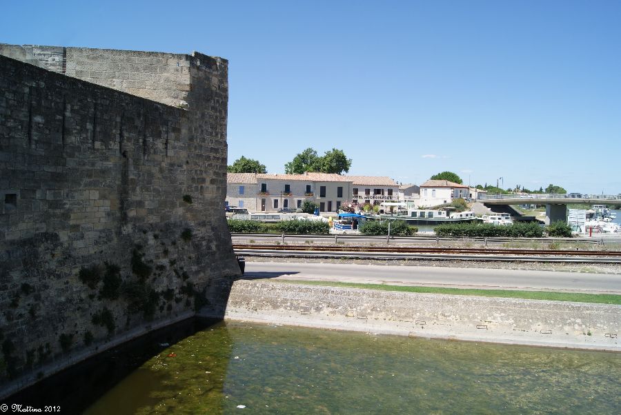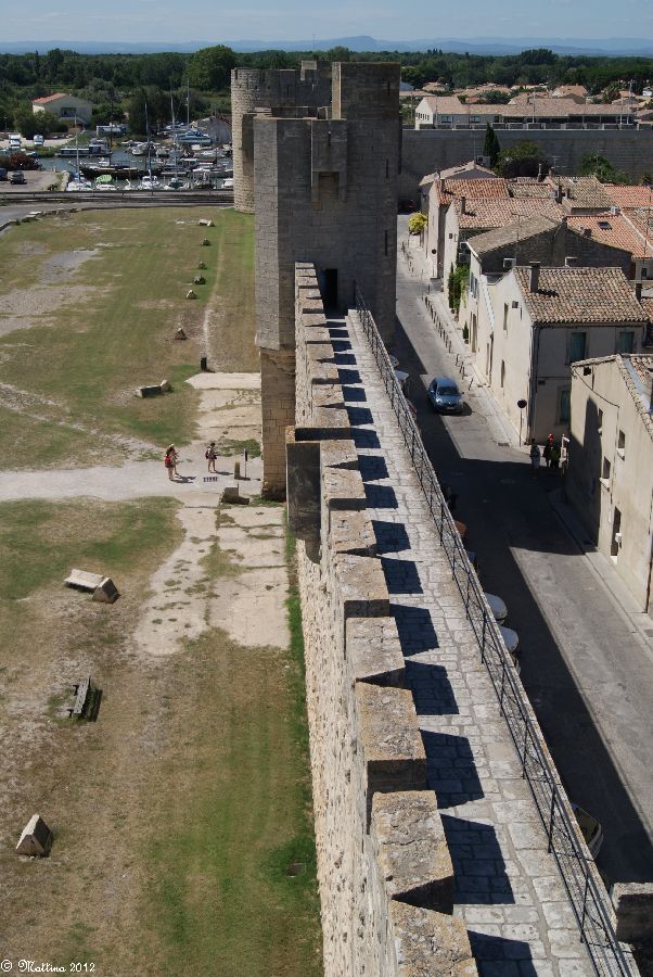Von dieser Seite der Mauer hat man freien Blick auf den Yachthafen, die Straße und die Schienen. Der letzte Turm auf dem Rundgang über die Stadtmauer ist die Porte des Remblats. Bis ins 18. Jahrhundert hieß sie noch Porte de Montpellier, nachdem der Graben im Nordwesten aufgefüllt wurde, wurde sie umbenannt.