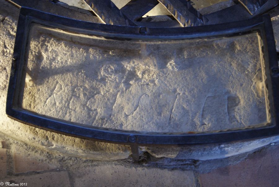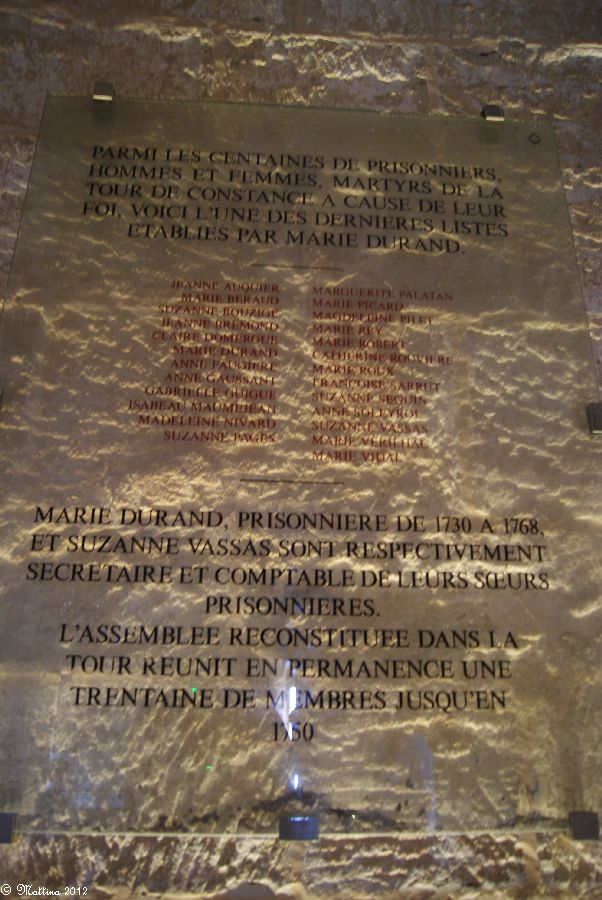 "Register" (Resister (widersetzen) auf Französisch), die Inschrift in der Mitte des "Aufenthaltsraumes" die auf Marie Durand zurück geführt wird, die hier 38 Jahre lang gefangen war.