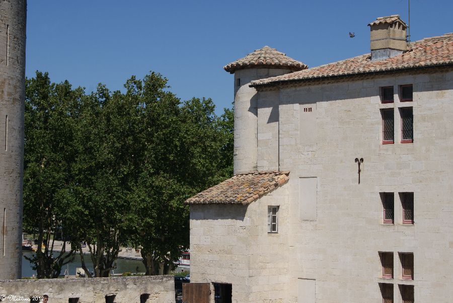 Blick von der Porte des Moulins auf die Porte de l'Organeau, eine Tür mit zwei Ringen zum festmachen von Galeren, und auf den Tour des Bourguignons. Es wird behauptet, dass hier 1421 während des Konfliktes zwischen Armagnac und Burgund eine Garnison aus Burgund, massakriert und mit Salz eingepökelt wurde um Seuchen zu verhindern. Ihhhhh....