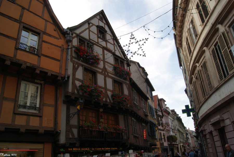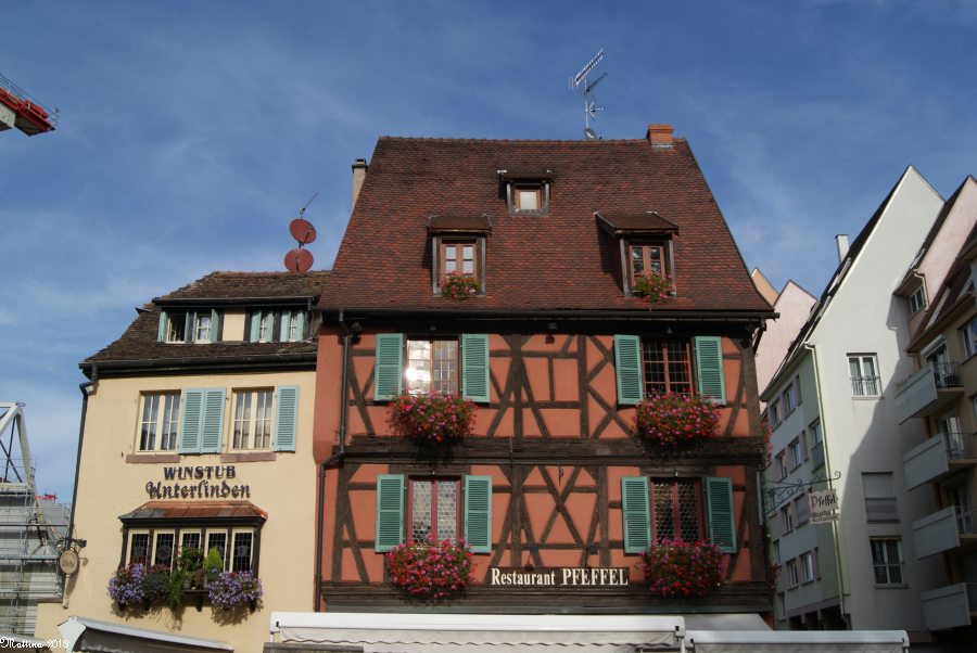 In der Mitte das gelbe Fachwerkhaus mit den roden Fensterläden ist das älteste haus Colmars, wie wir aber erst viel später erfahren.