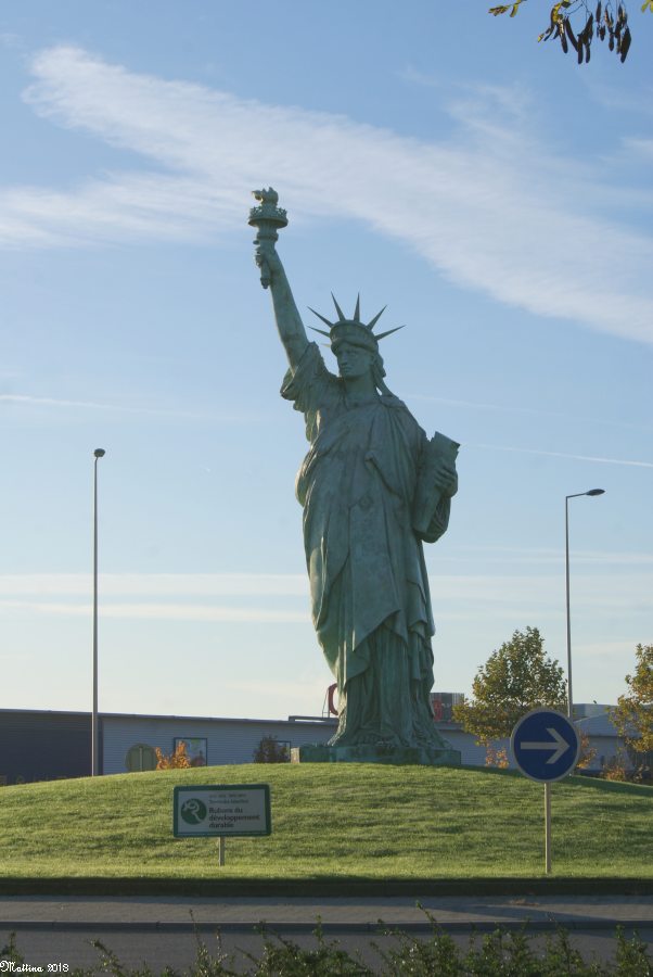 Die Kinder wollen dann heute, weil das Wetter schön ist, endlich die Burg besichtigen. Aber erst halten wir noch am Kreisverkehr mit der Freiheitsstatue an, er ist nur wenige Meter vom Hotel entfernt. Neben der Statue auf Liberty Island in New Jersey gibt es noch eine in Las Vegas, in Paris und eben diese hier im Geburtsort Bartholdis.