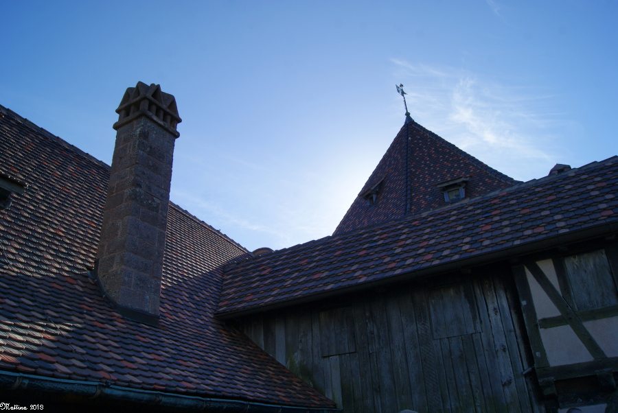 Auf dem Weg nach Haut-Kœnigsbourg kommen wir durch ein kleines Städchen mit einem hübschen Kirchturm, leider habe ich mir den Namen nicht gemerkt.