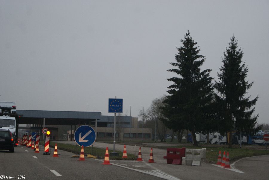 Aufgrund des Ausnahmezustandes in Frankreich rechnen wir mit Grenzkontrollen, aber es ist alles wie immer, lediglich die Fahrspuren wurden verengt und ein Polizeiauto steht dort.