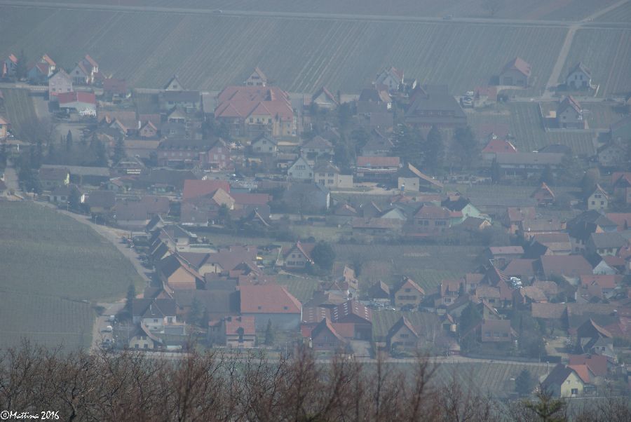 Obwohl die Sonne rauskommt, oder gerade deswegen, ist die Sicht leider nicht so schön, man kann kaum Eguisheim erkennen...