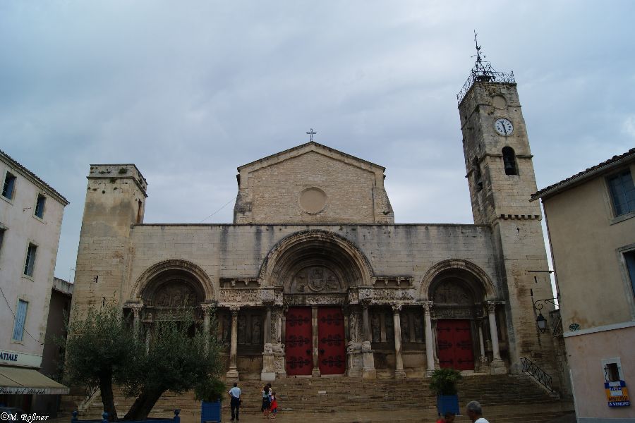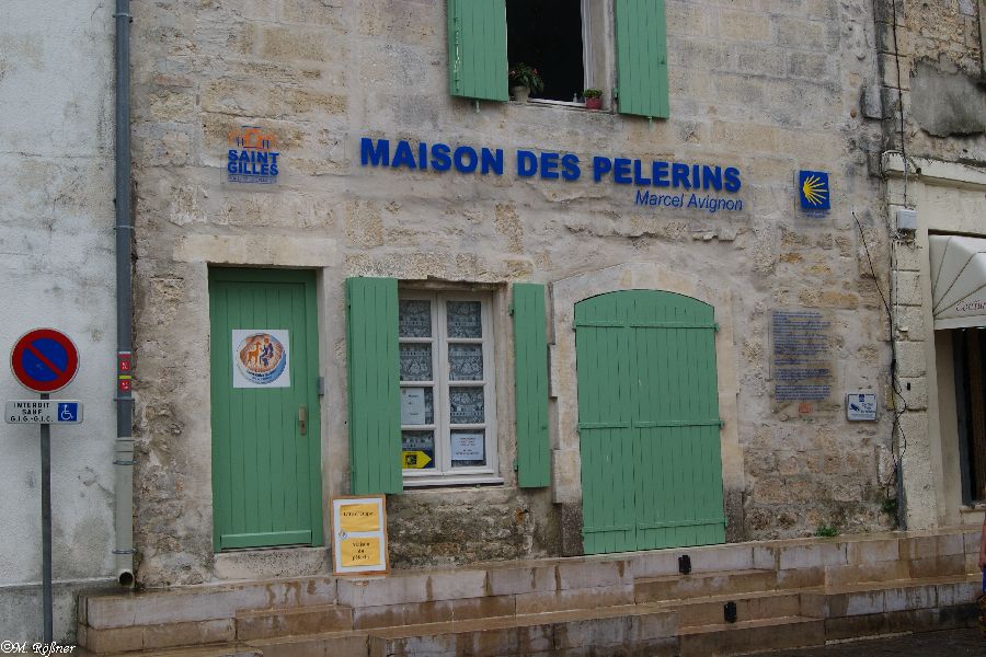 Es war ein Tag der sehr drückend begann und es fielen auch ein paar Tropfen Regen. Kein Strandwetter, sondern Ausflugswetter. Also Café kochen, Kühltasche packen und ab geht's. Wir fuhren zunächst über eine schnuckelige schmale Straße, vorbei an der Mas Canavere (ja genau, der Reis kommt hierher), nach St. Gilles. Dort holen wir im OT erst mal einen Stadtplan. Als wir wieder raus kommen regnet es. Na so was! Wir gingen trotzdem los, der Regen war ja warm. Da wir den Ort jetzt nicht sooo ansprechend fanden gingen wir durch die schmalen Gassen hinauf zur Pilgerkirche.