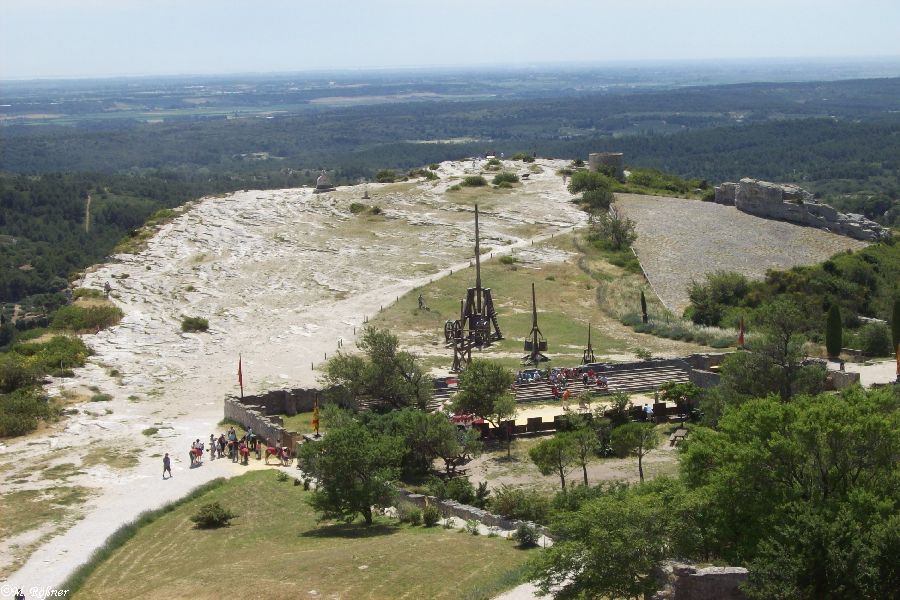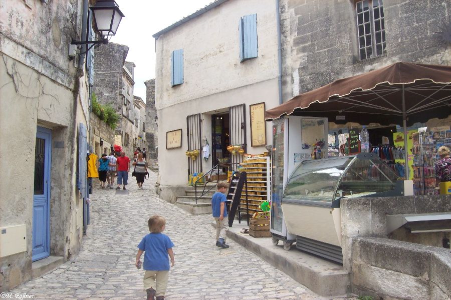 Ich hatte mir gewünscht, dass wir noch mal nach Les Baux de Provence fahren, denn beim letzten Besuch habe ich ja nur mit Baby im Schatten gesessen. Wir passten einen Tag ab, an dem es nicht so heiß würde, dachten wir jedenfalls...