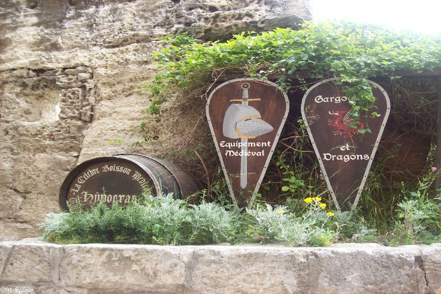 Wir suchen uns ein schattiges Plätzchen zum Parken, stärken uns kurz und los geht es hinauf in den kleinen Ort, auch einer der Plus beaux villages de France, in dem aber nur noch um die 20 Leute wohnen. Hauptsächlich wird er also von Touristen beherrscht.