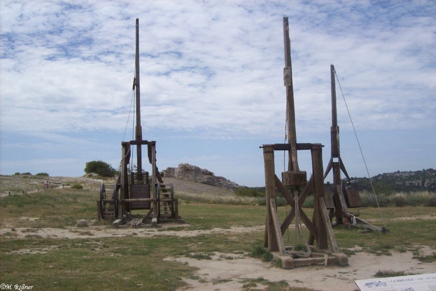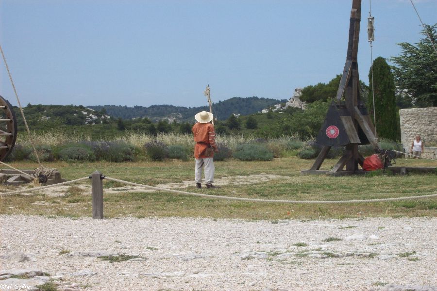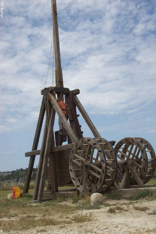 Dann gibt es eine Vorführung der Katapulte, es zieht sich ein wenig in die Länge, die Zuschauer müssen zum Mitmachen animiert werden und es gilt eine Schulklasse zu belustigen.