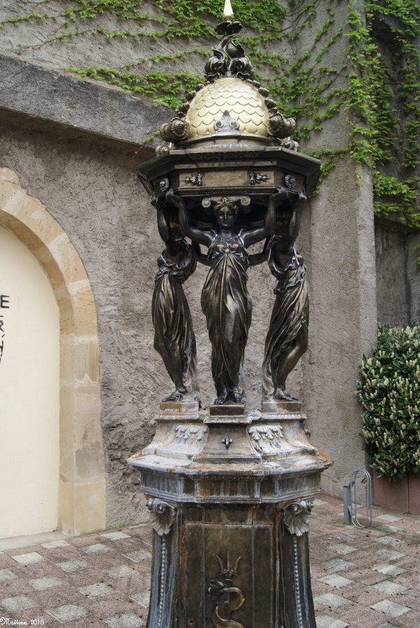 In einer unscheinbaren Ecke findet sich ein wunderschöner Wallace-Brunnen...
