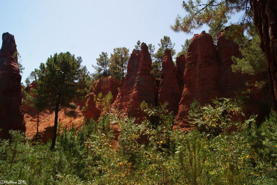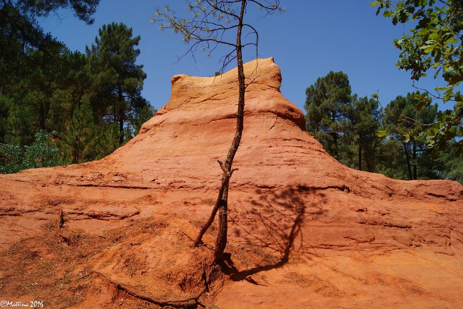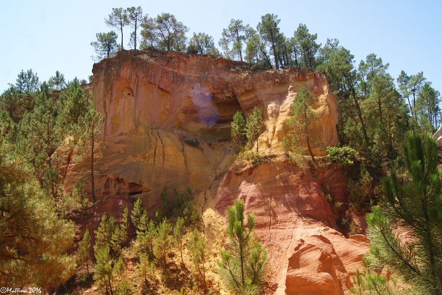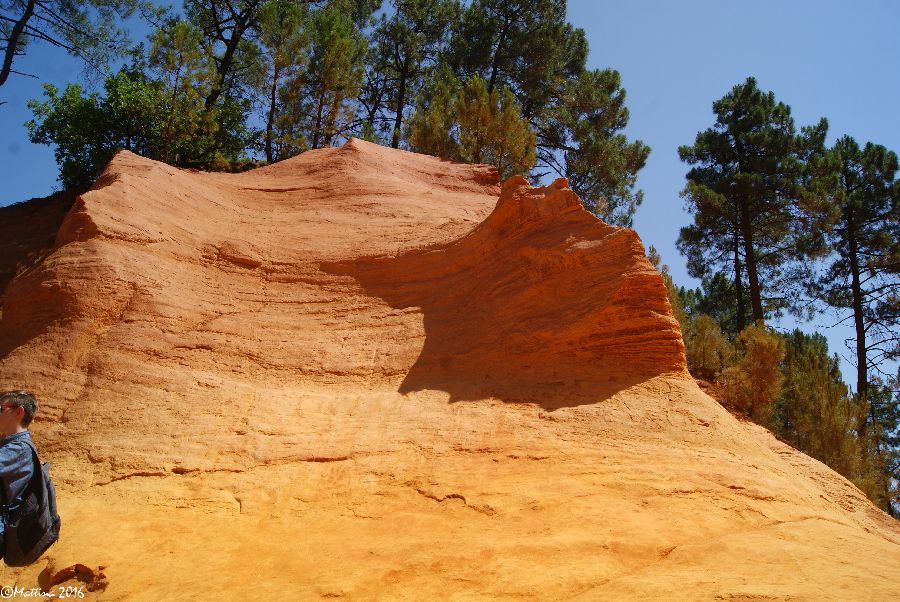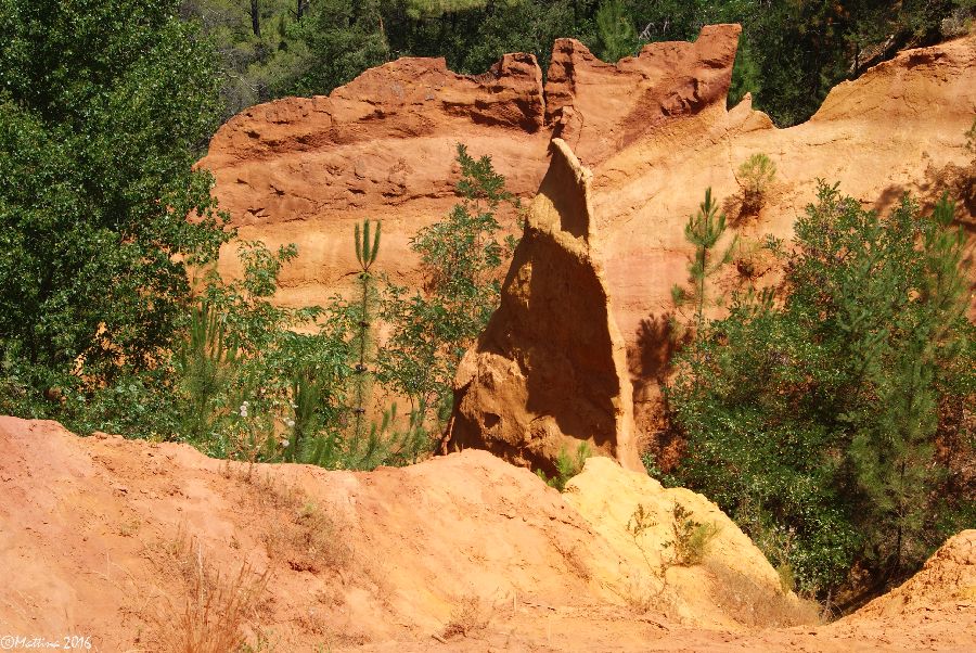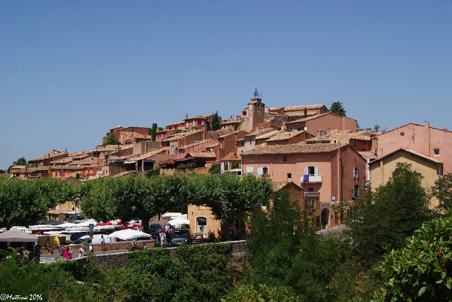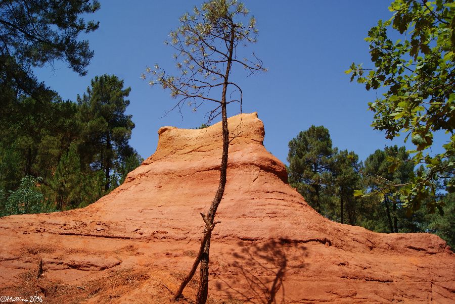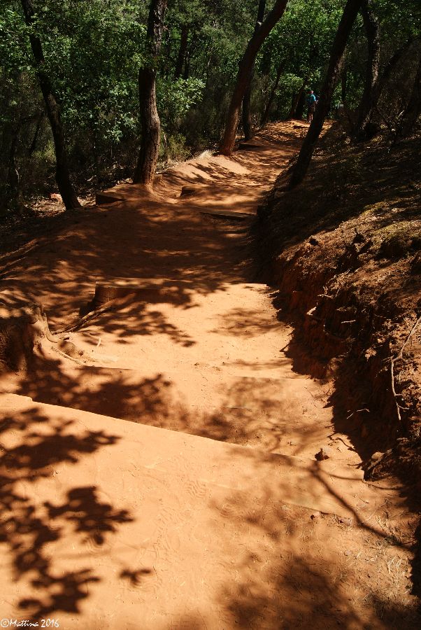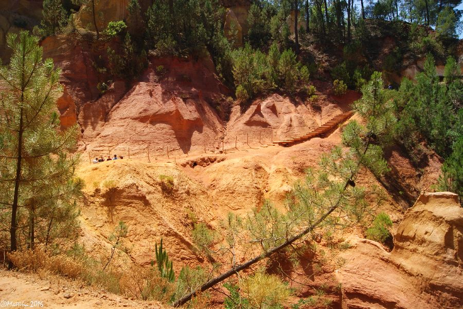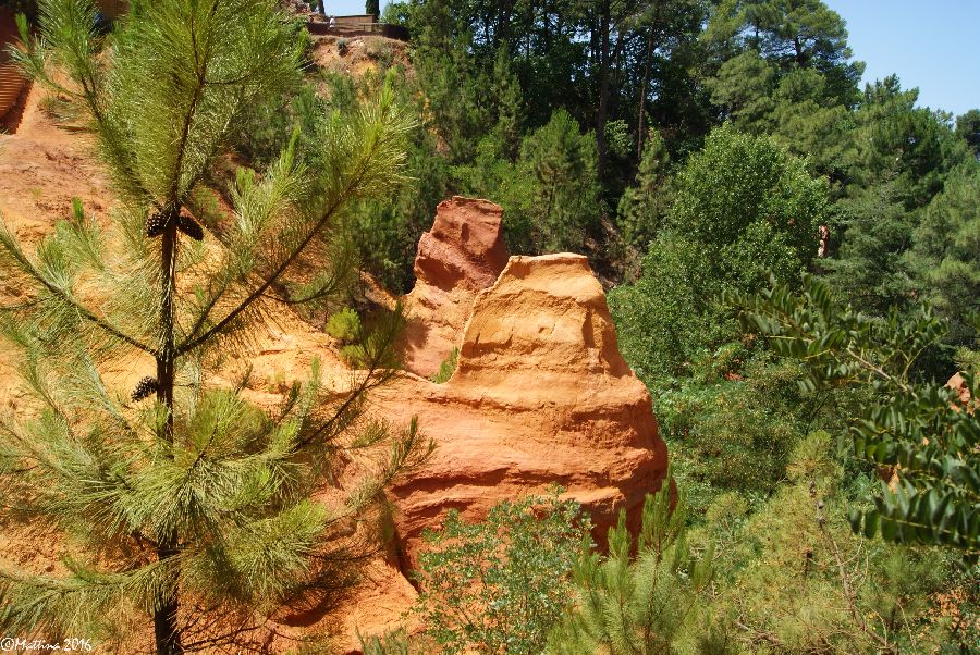 Nachdem wir Salon de Provence den Rücken gekehrt haben, entschließen wir uns noch einmal nach Roussillon zu fahren um über den großen Ockerweg zu gehen, er ist ja nur geringfügig weiter als der Kleine, aber wir haben das Gefühl es fehlt uns was. Kurz vor dem Ort finden wir schnell einen Parkplatz und gehen zu Fuß weiter. Es ist heiß, 36° C und diesmal kein Mistral...
