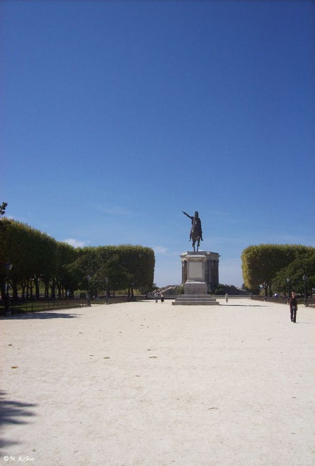Am Place de la Comédie besteigen wir Le Petit Train und lassen uns durch die Stadt fahren. Aber es ist einfach zu viel gleichzeitig alles zu fotografieren und zu erfassen, was uns per Kopfhörer mitgeteilt wird. Durch die engen Gassen geht es nach oben, auf den höchsten Punkt der Stadt. kein Haus darf höher gebaut sein als dieser Punkt. Oben befindet sich ein Park, "Le Peyrou", und in diesem befindet sich ein Reiterstandbild des Sonnenkönigs.