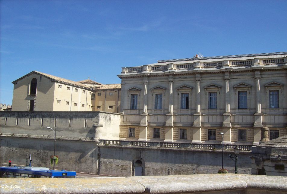 1830 wurde das Eingangstor zum Triumphbogen, nachdem man die Gitter und Mauern die es es mit dem Peyrou verband und das schwere hölzerne Tor entfernte. Links hinter dem Bogen sieht man den Justizpalast.