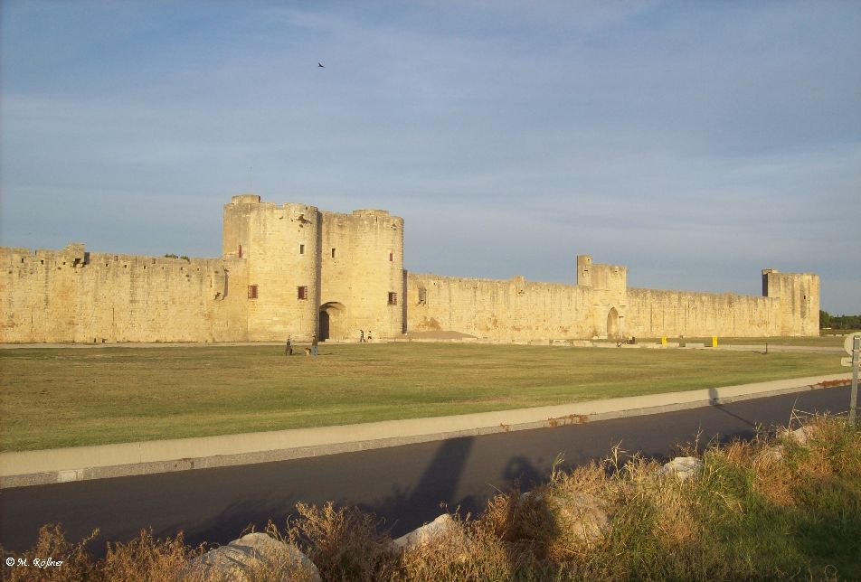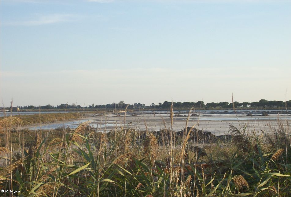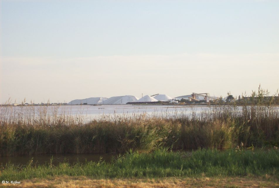 Auf dem Rückweg fällt uns das tolle Licht auf, das die Nachmittagssonne auf die Salinen wirft, das Salz leuchtet wie Schnee. Wir drehen vor Aigues Mortes und als wir dann halten können ist das Licht mehr ganz so.