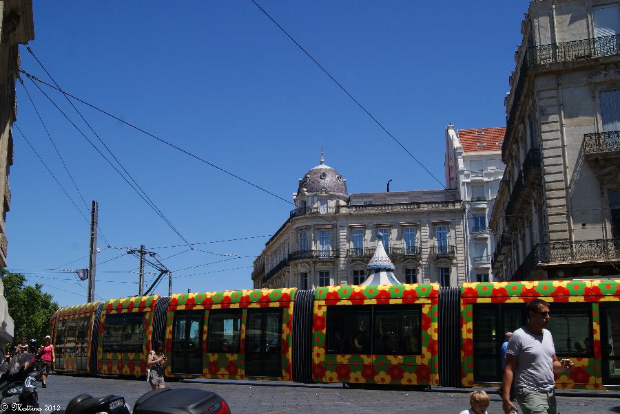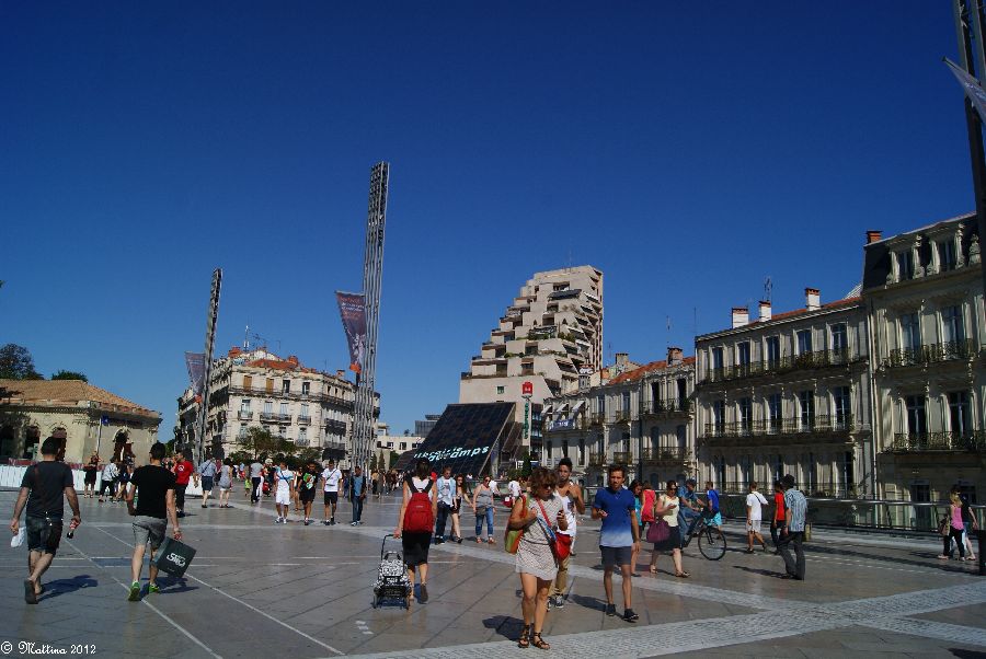Und zurück auf dem Place de la Comédie, mit dem "Treppenhaus", wie unser Jüngster immer so schön sagt, im Hintergrund.
