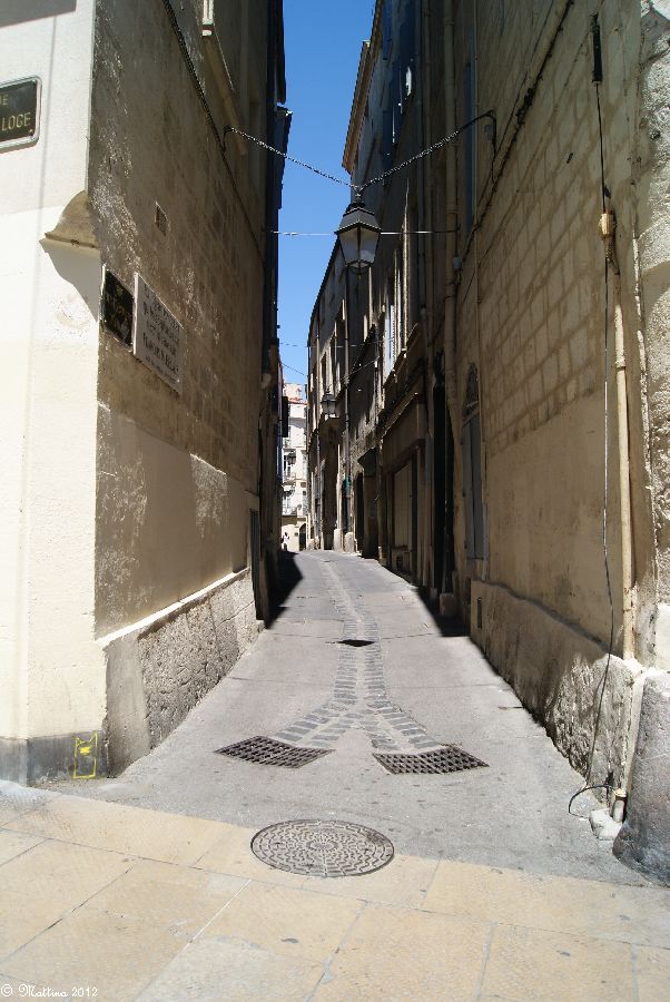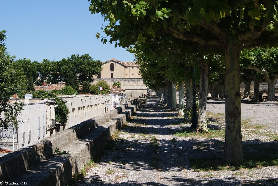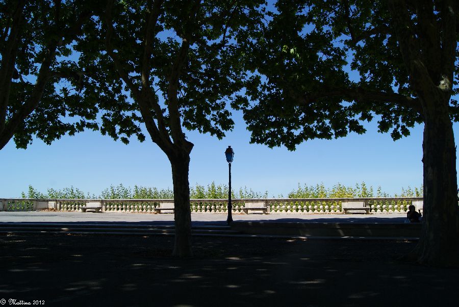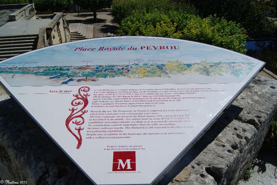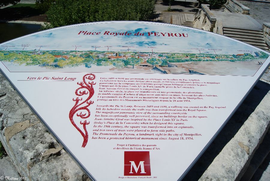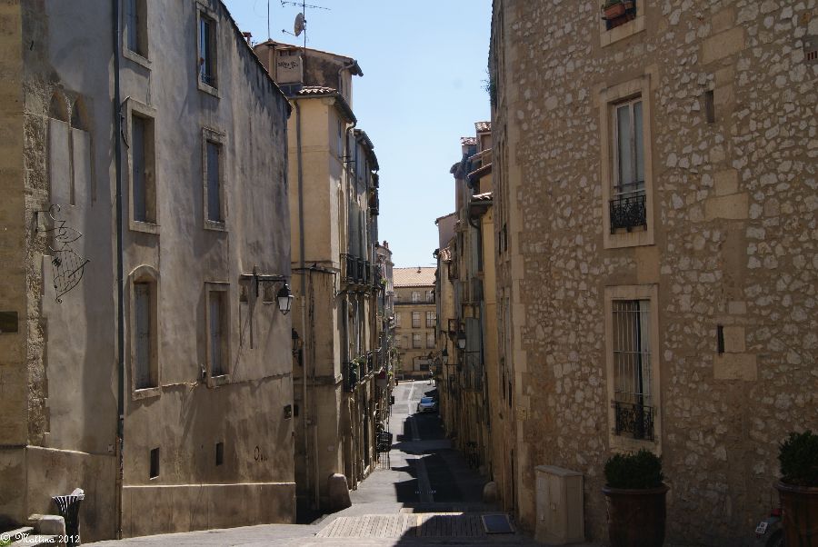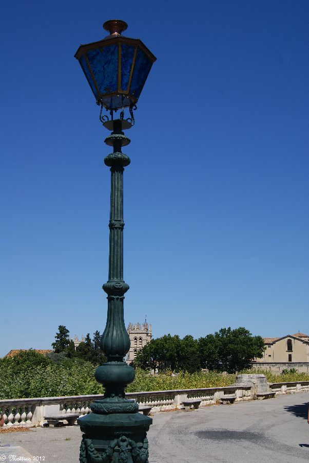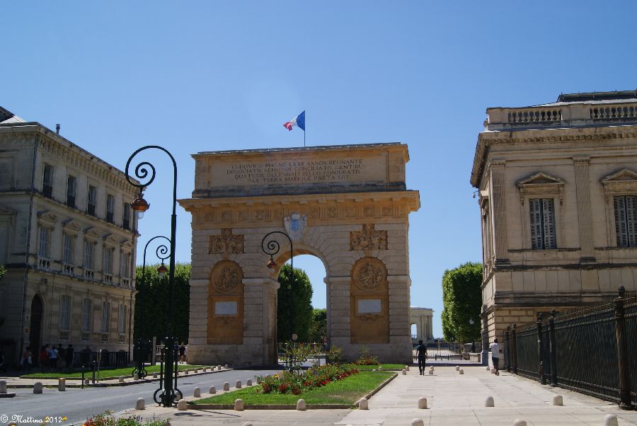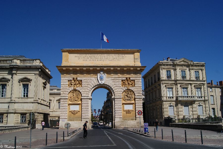Das Aquädukt "Saint-Clément", leider kann man hier auch drauf. Es wurde 1772 fertiggestellt und diente zur Wasserversorgung der Stadt aus der 14 km entfernten Quelle. Am Ende steht das Chateau d'Eau von wo aus das Wasser zu verschiedenen Brunnen, u.a. zu dem an der Place de la Comédie, und Wasserversorgungsstellen weitergeleitet wurde. Das Aquädukt hat 51 große und 182 kleine Bögen, eine Länge von 880 Metern und eine Höhe von 22 Metern.