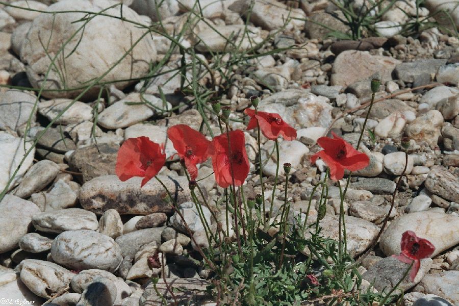 Der Mohn wehrt sich tapfer gegen den Mistral.