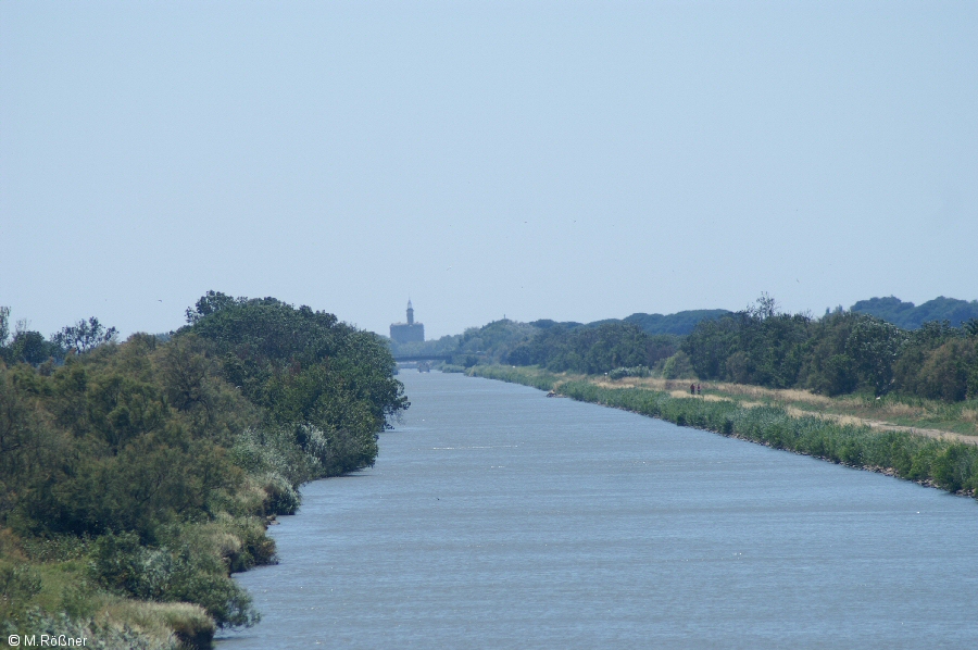 Und eigentlich hätten wir bei unserem Kanalspaziergang auch hierher kommen können. Fährt oder geht man rechts den Weg, kommt man entlang des Canal du Rhône à Sète beim Tour Carbonnière raus...