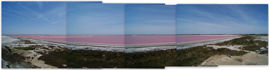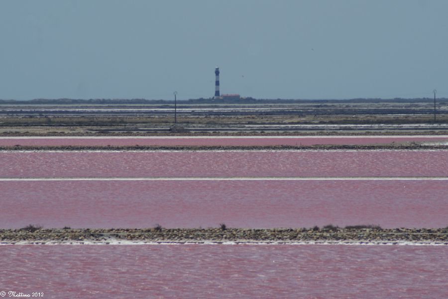 Wir klettern den Hügel hinauf und haben nun einen Überblick über das Ausmaß der Salinen. Blick auf den Phare de Faraman