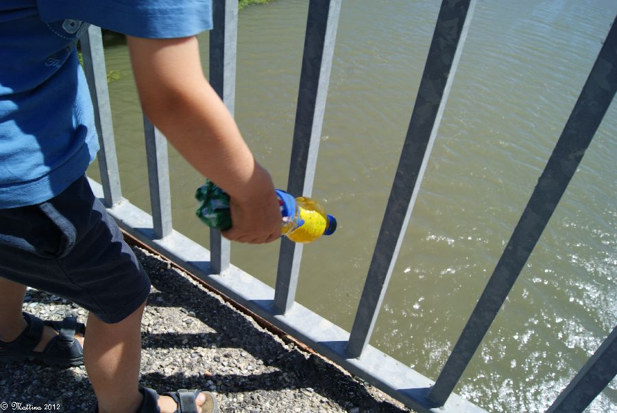 Gute Reise kleine Flaschenpost. Leider hatte man im Kindergarten (und ich später auch nicht) bedacht, dass so eine Plastikflasche sehr leicht ist. Der nächste Windstoß hat sie ins Schilf gepustet, wo sie wohl noch immer fest hängt. Schade, es hätte mich für Dominique gefreut, wenn da Post angekommen wäre.