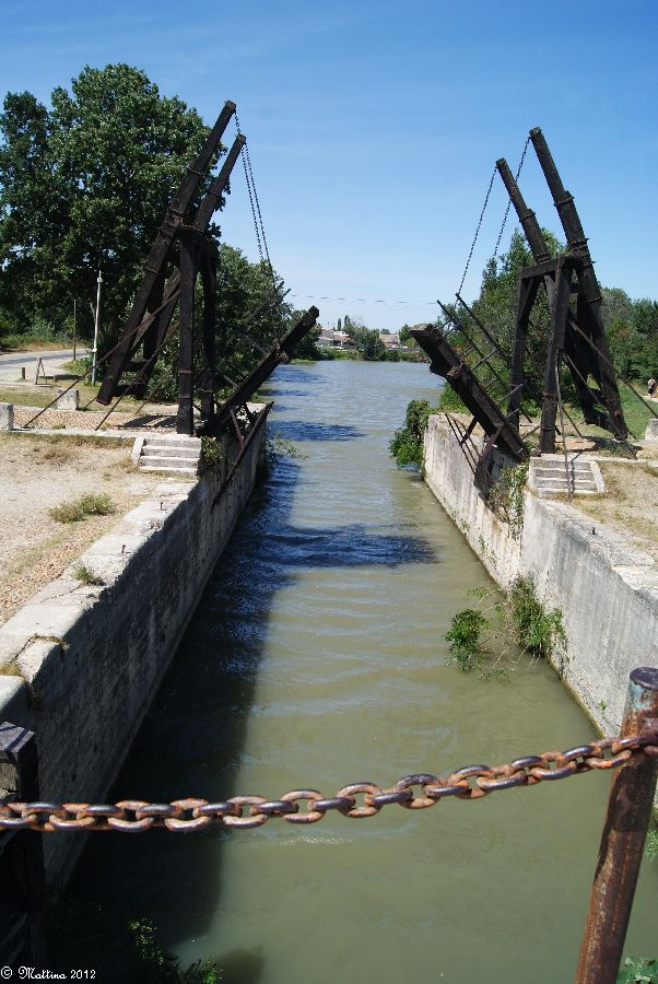 Nach diesem kurzen Stopp geht es weiter Richtung Arles. Und dann sehen wir plötzlich das Hinweisschild auf dem steht: "Pont Van Gogh". Ja schön, die Brücke wollte ich doch sowieso mal sehen, also nix wie hin. Völlig unspektakulär steht sie da und oberquert den kleinen Kanal in den wir eben noch die Flaschenpost geworfen haben.