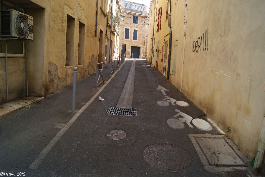 Lustiger Fahrradstreifen in einer sehr engen Gasse...