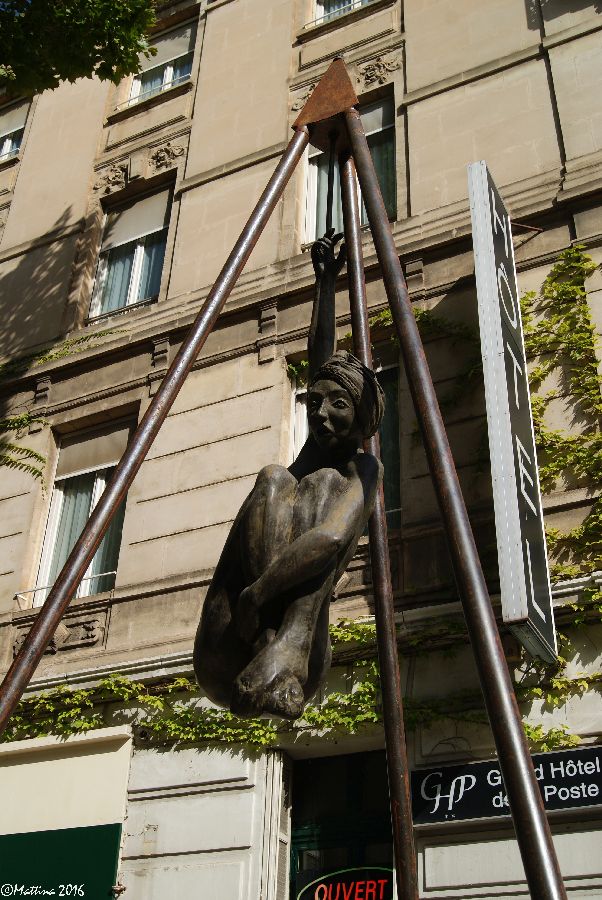 Und dann finden wir an einem kleinen verwunschenen Platz einen noch verwunscheneren Brunnen. Hier könnte ich stundenlang sitzen... Der Brunnen existierte schon 1770 und hat die gleiche Form wie die Fontaine Moussue, das Wahrzeichen der Stadt. Dieser hier steht am Platz Louis Blanc. Der Platz heißt so, weil am 21. April 1883 der Innenminister das Dekret erlassen hat, dass alle Städte Frankreichs einen Platz nach dem Historiker und Politiker Louis Blanc zu benennen. Das macht den Platz nicht weniger romantisch.
